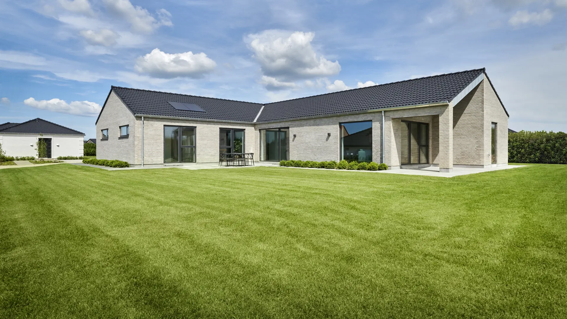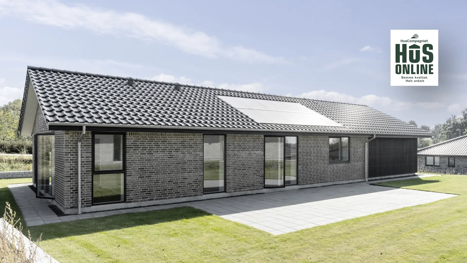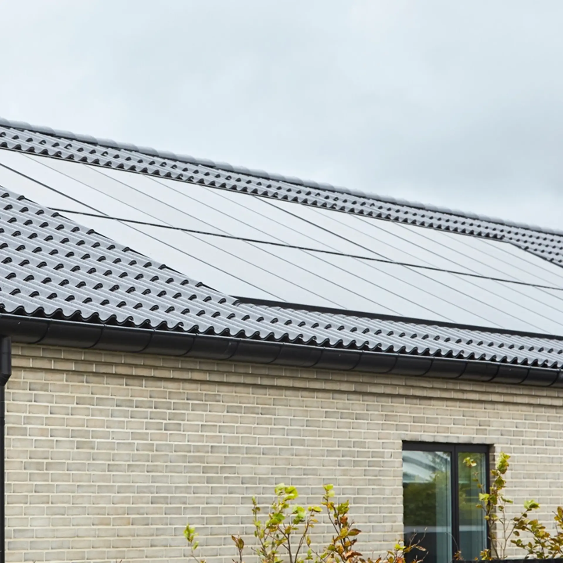I HusCompagniet nedfælder vi altid solcellerne i tagfladen som en integreret løsning. Det sikrer et mere æstetisk udtryk, en harmonisk tagflade og en løsning, der er tænkt ind i huset fra starten.