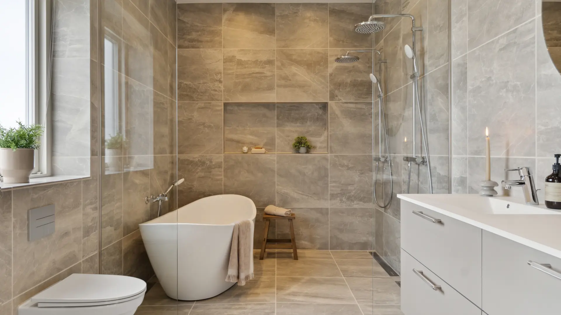 Blandt andet tilbyder vi CO₂-reducerede mursten som Greener fra Randers Tegl og LESS fra Egernsund Wienerberger, og alle vores armaturer er vandbesparende som standard. Derudover har vi et bredt udvalg af OEKO-TEX®- og Svanemærkede materialer, som understøtter et sundt indeklima og ansvarlige materialevalg.