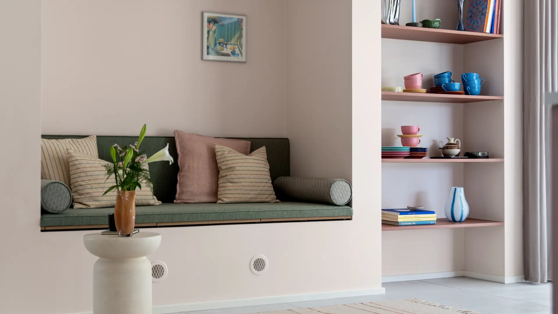 Indbyggede hylder og opbevaring i alkoven