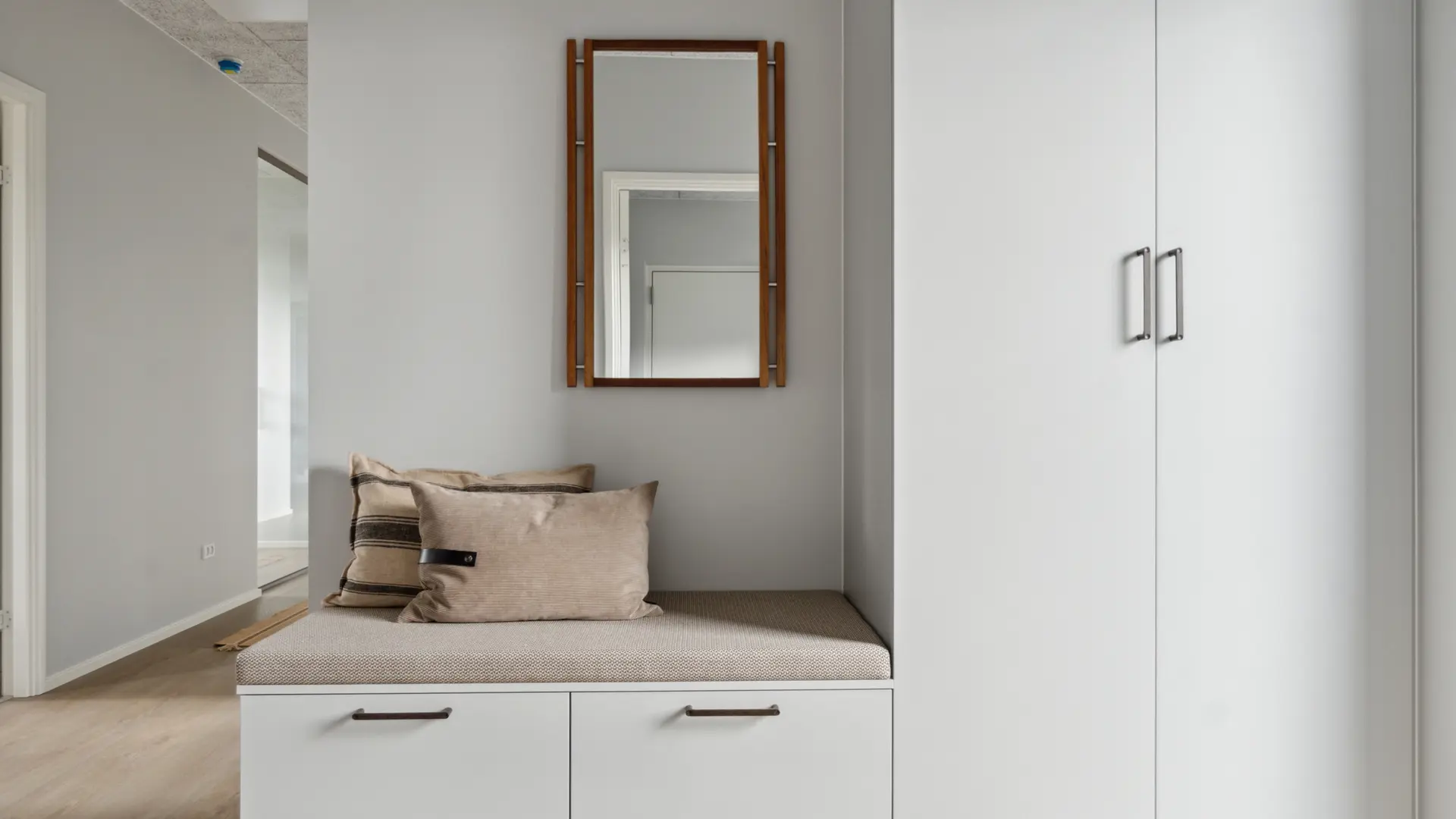 Opbevaring og siddeplads i entré