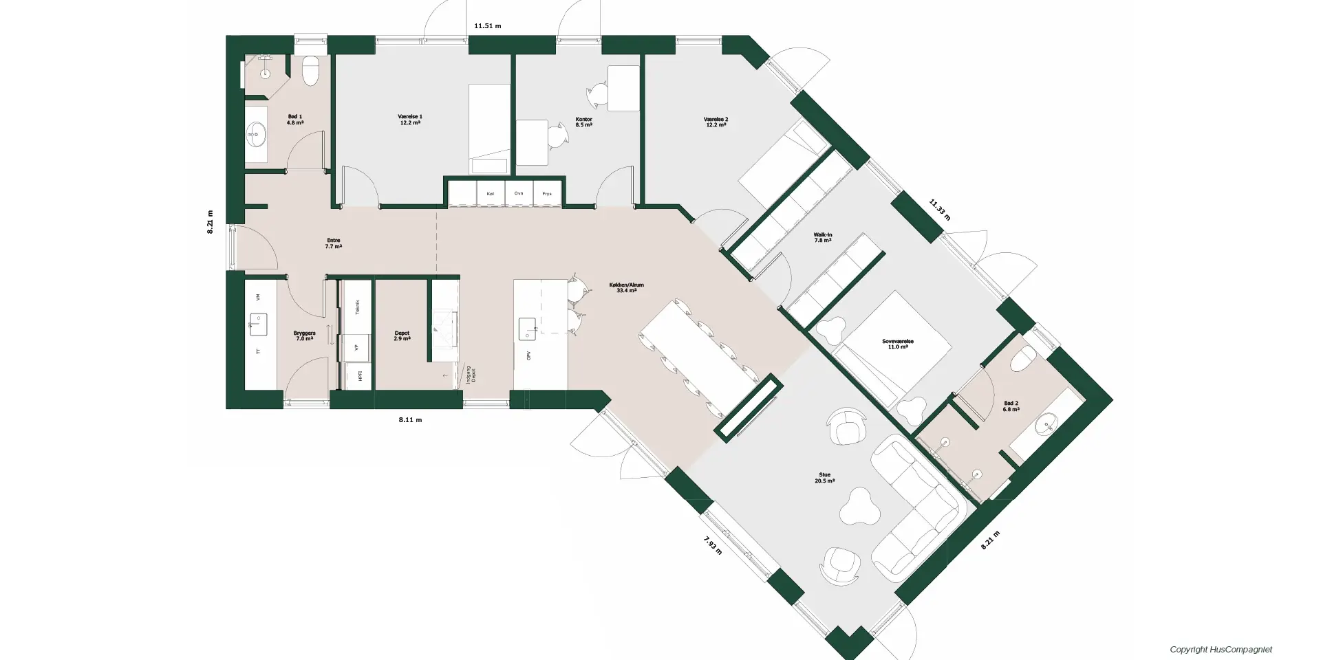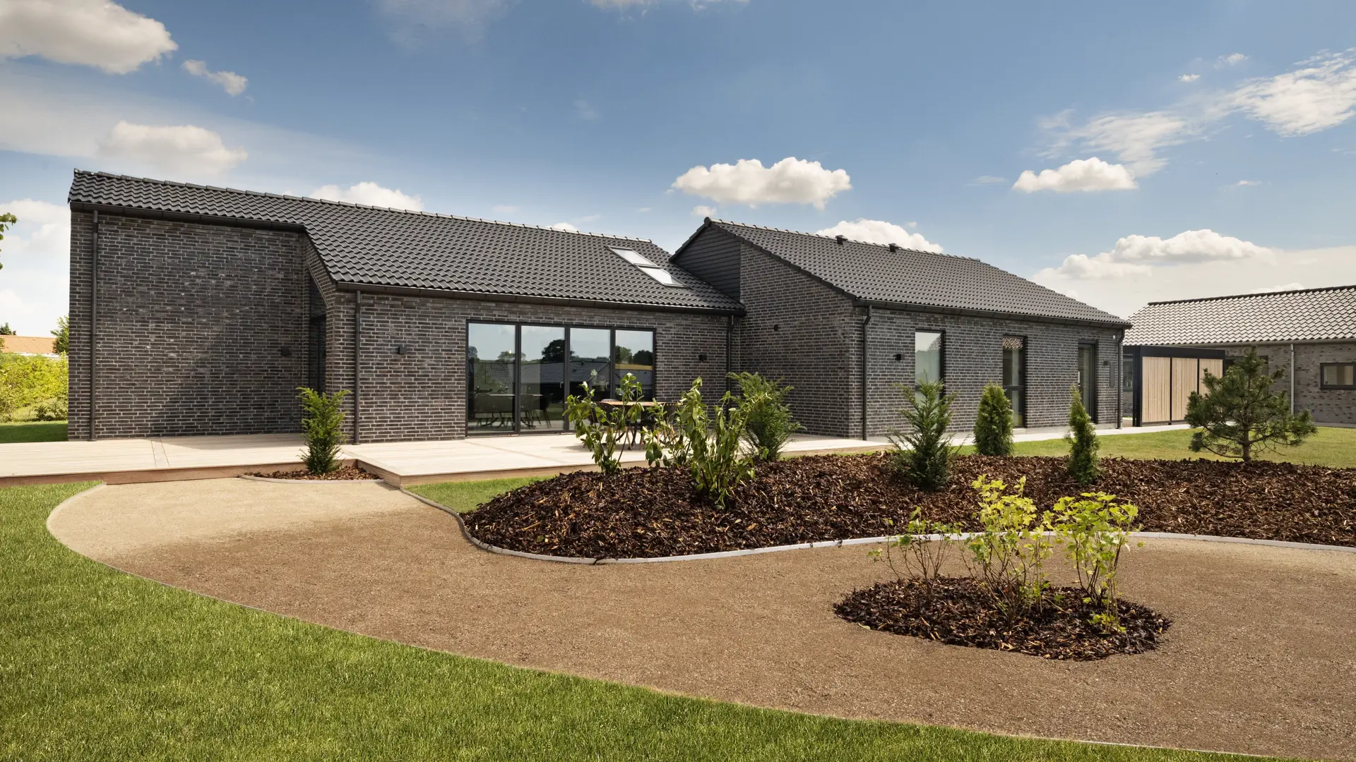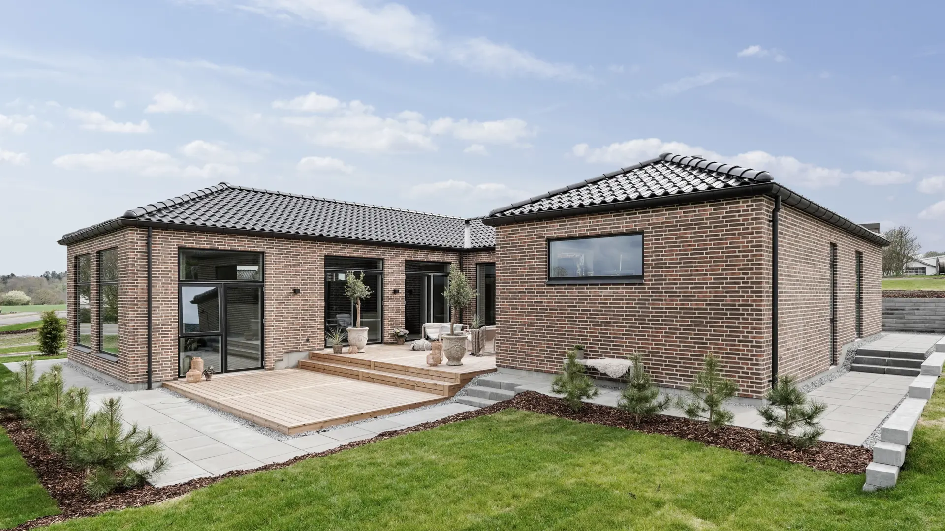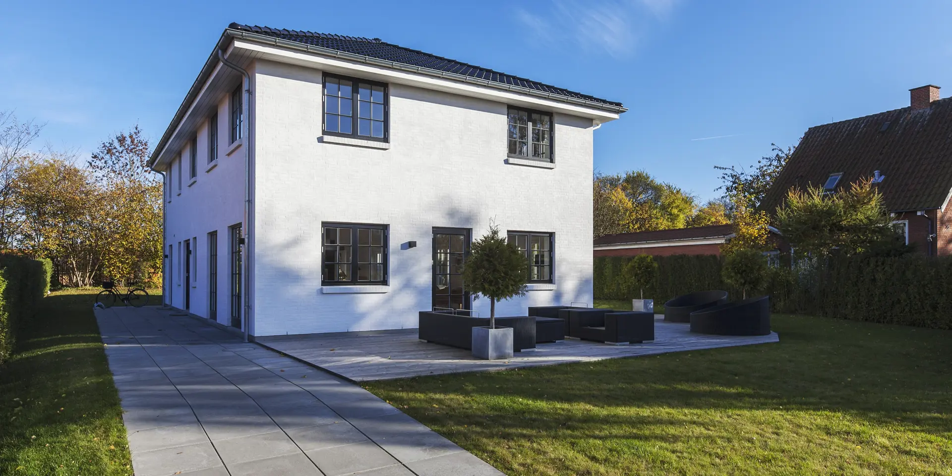 H’et er bare formen på huset. Det betyder også, at du får en kompakt løsning, hvor der er oplagt mulighed for at inddele huset i afdelinger, og hvor der er god mulighed for terrasser på begge sider af huset.