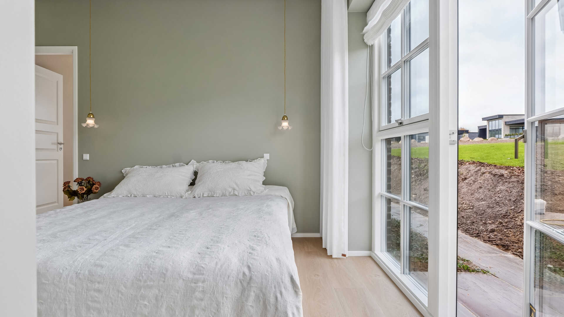 Du kan ankomme via den overdækkede hovedindgang eller gennem den forskudte dobbeltgarage, som har direkte adgang til bryggerset. Herfra træder du ind i en rummelig entré og fordelingsgang, der giver adgang til tre gode værelser og et badeværelse.