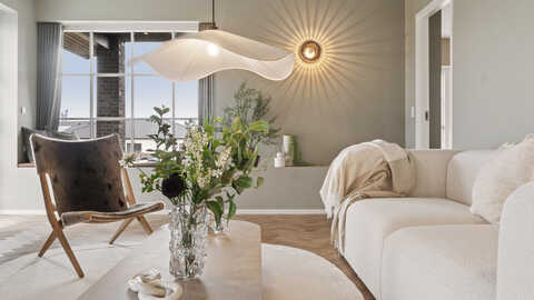 Stuen byder desuden på et smukt sansevindue og endnu en udgang til terrassen, som forlænger opholdsrummet i de varme måneder.