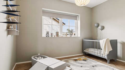 Boligen byder på en separat værelsesafdeling med to gode og lyse børneværelser samt tilhørende badeværelse – ideelt til familien, der ønsker en praktisk opdeling mellem børn og voksne.