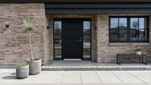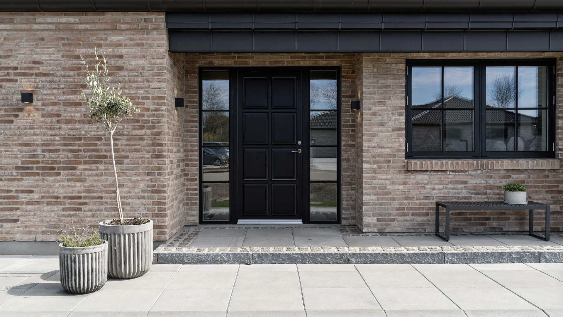 hvor overtøj, sportstasker og indkøb nemt kan håndteres uden omveje. Ankomsten sker via et hyggeligt, overdækket indgangsparti, som giver en varm velkomst for både familie og gæster.