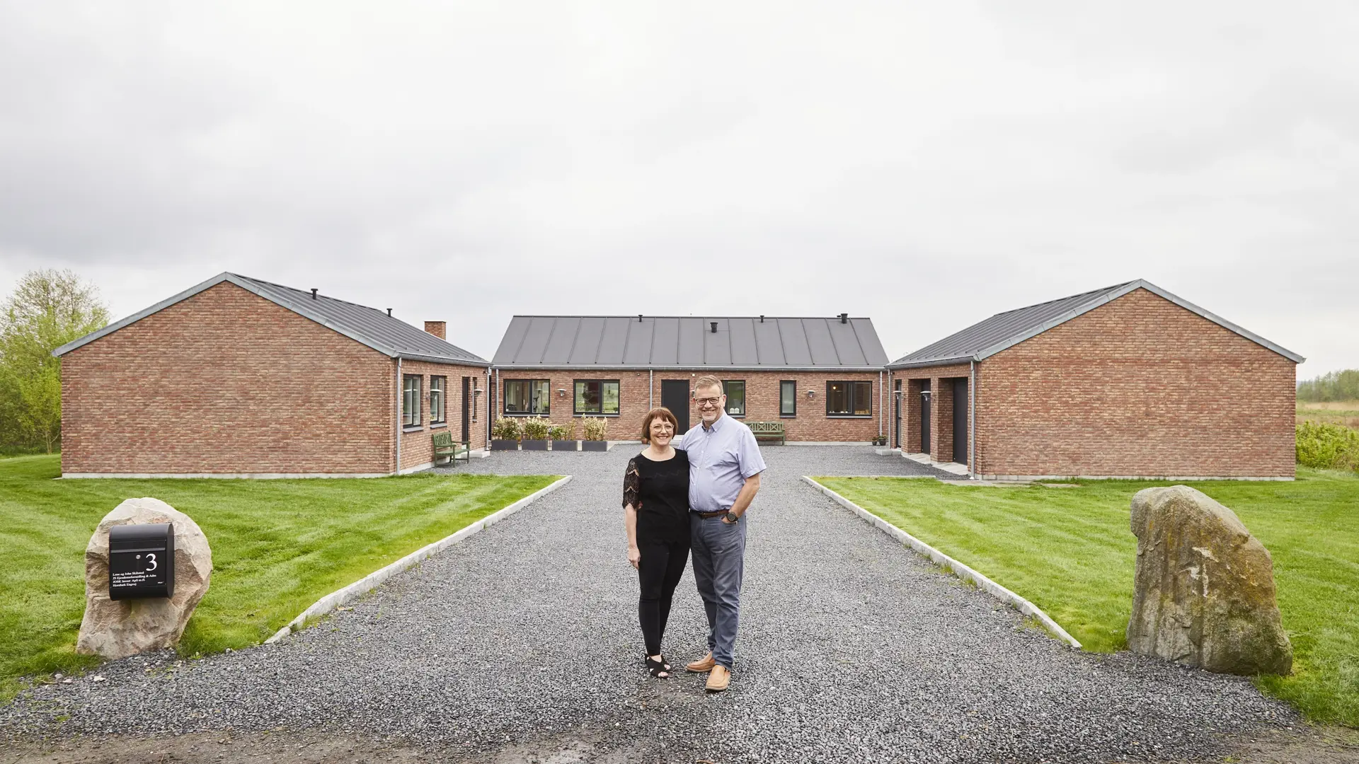 Lene og John har bygget en moderne fortolkning af et trelænget landsted med hovedhus, anneks og garage.