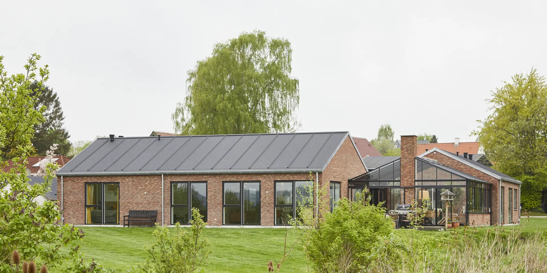 Vi er meget glade for kombinationen af vores mursten og tag, som tilsammen skaber det helt rette udtryk, fordi det passer ind i husets omgivelser, og samtidig er i tråd med det oprindelige hus på grunden.