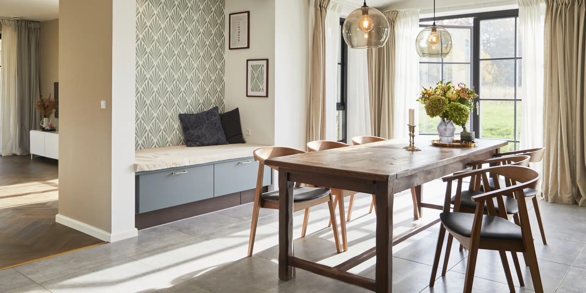 Vi er vilde med alkoven i køkken-alrummet – og særligt placeringen i husets hjerte gør den helt speciel. Vi bruger den både, når vi bare er os, og når vi har gæster, og elsker, at man kan tage en slapper med benene oppe uden at trække sig fra selskabet.