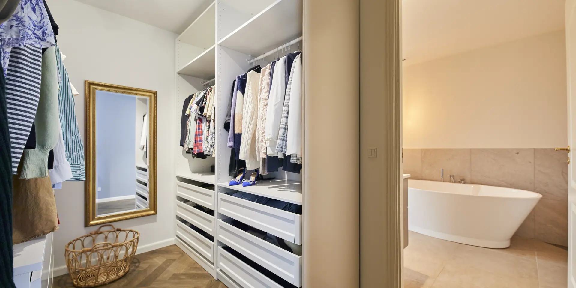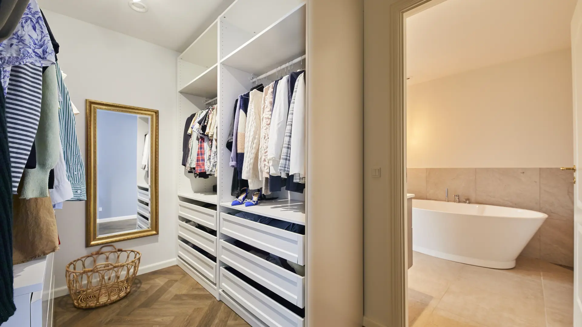 Vi er også vildt glade for vores 'voksen-afdeling' med soveværelse, walk-in og badeværelse. Det er både praktisk og hyggeligt, især når vi har overnattende familie, så nyder vi, at huset har to afdelinger.