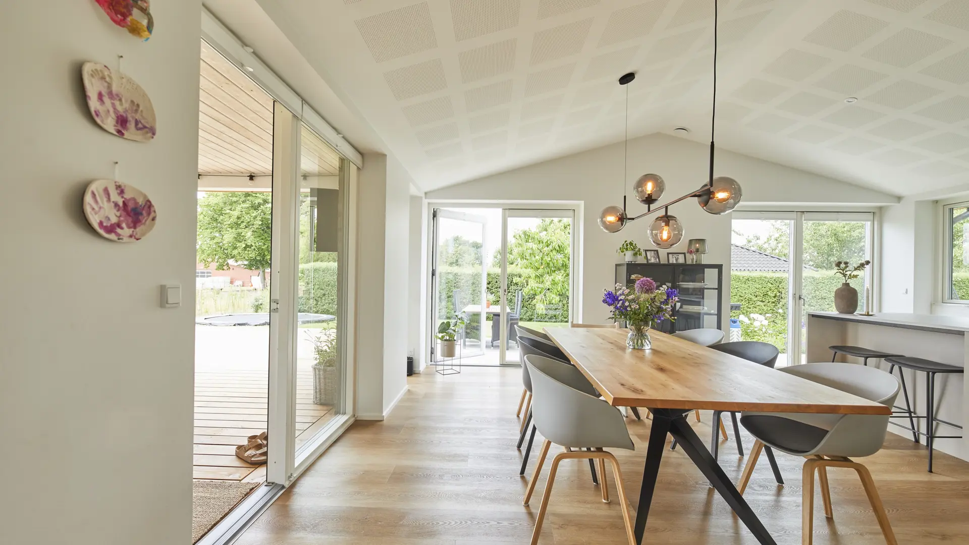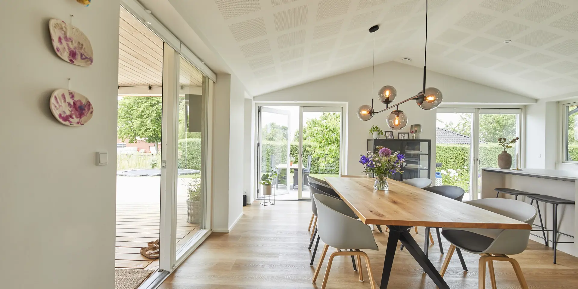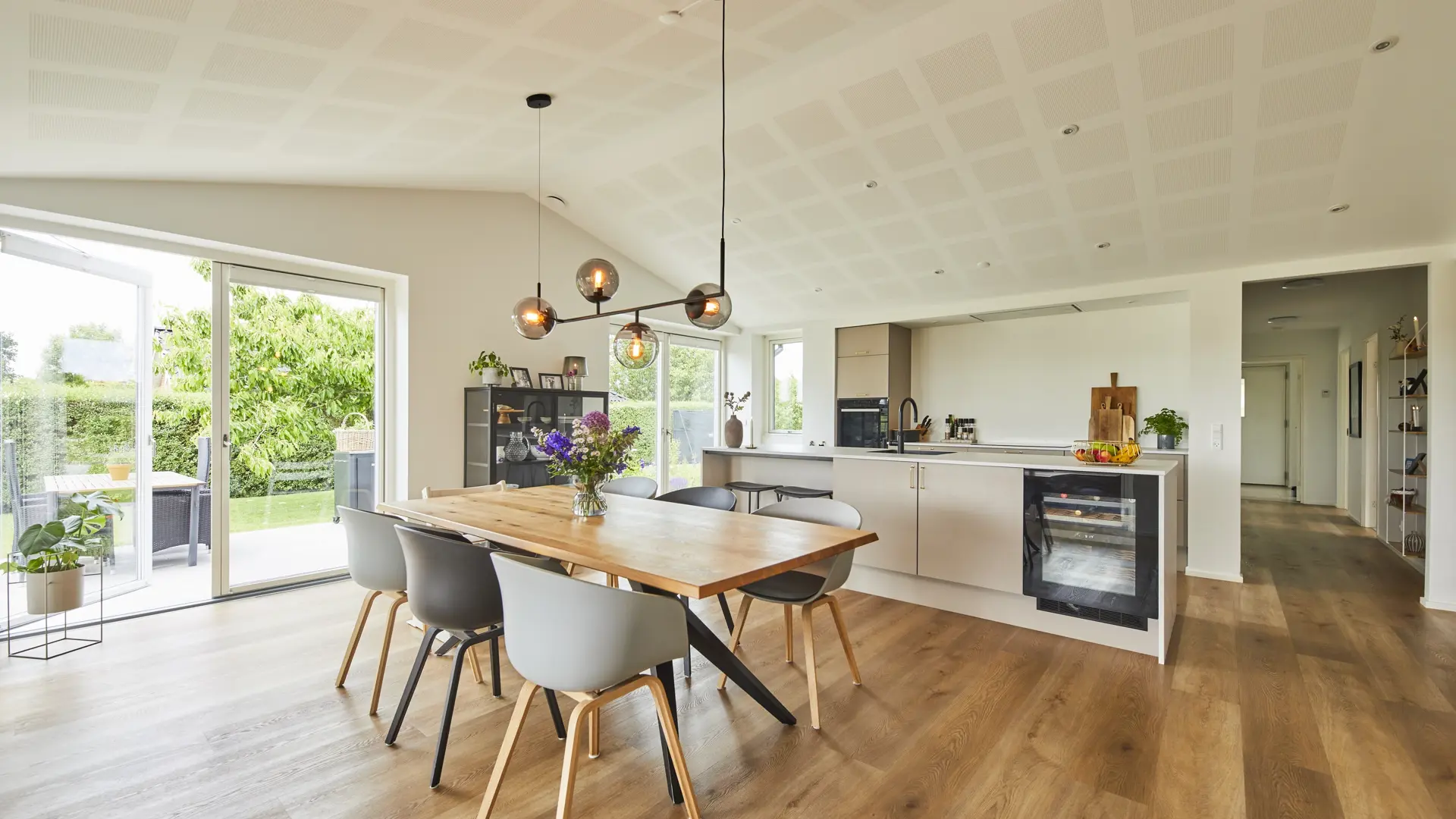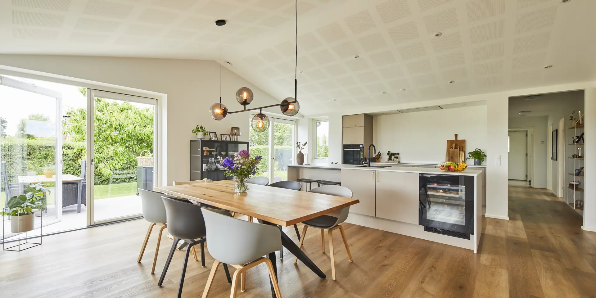 Loft til kip i køkken-alrummet giver en fantastisk rumfornemmelse. Det er vi virkelig glade for.