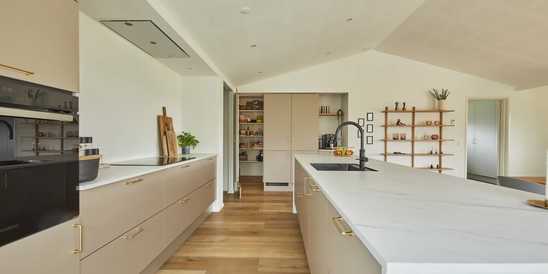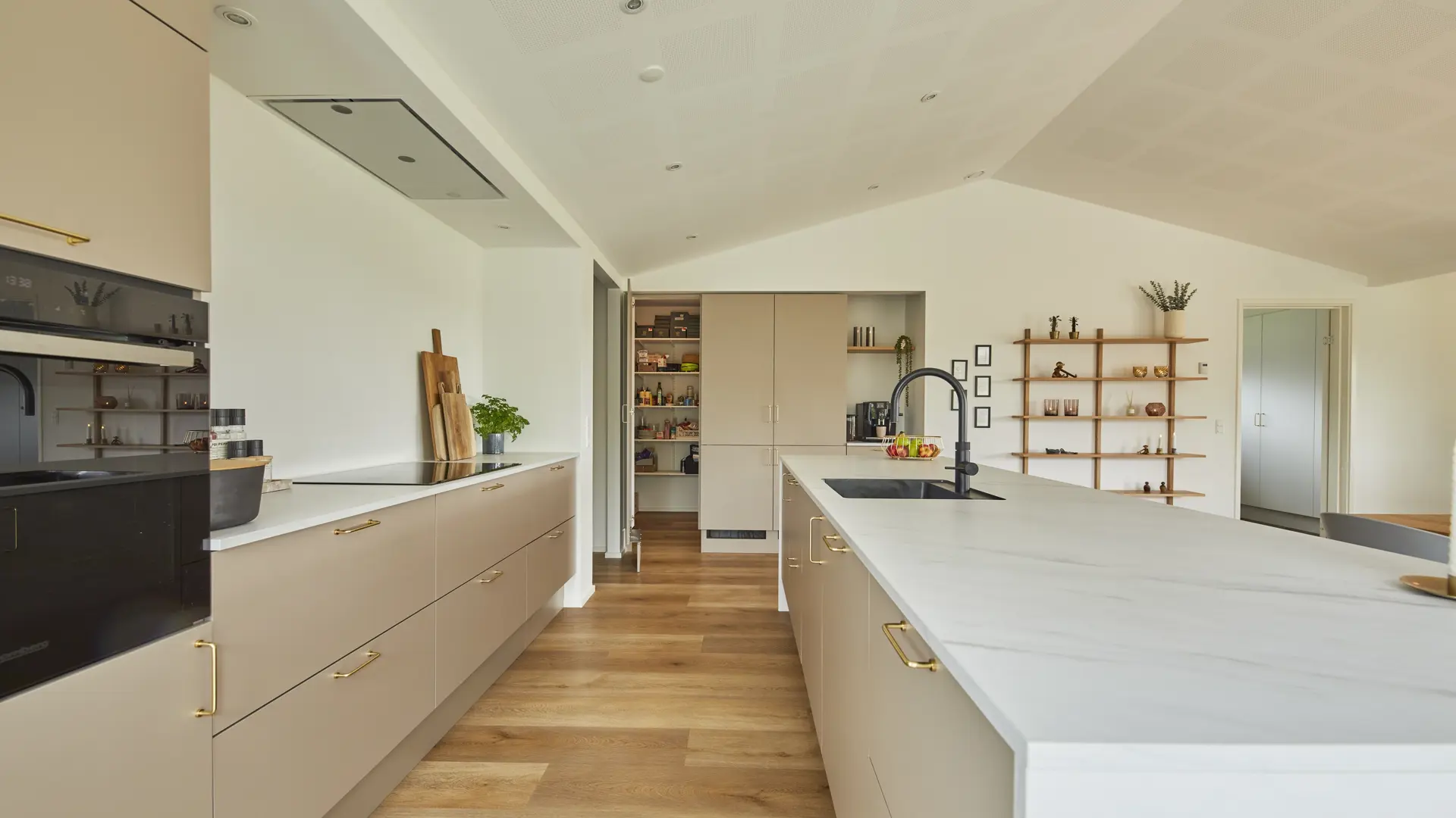 Vi er virkelig glade for vores mange indbyggede opbevaringsmuligheder i hele huset. De opfylder et praktisk behov uden at gå på kompromis med udtryk.