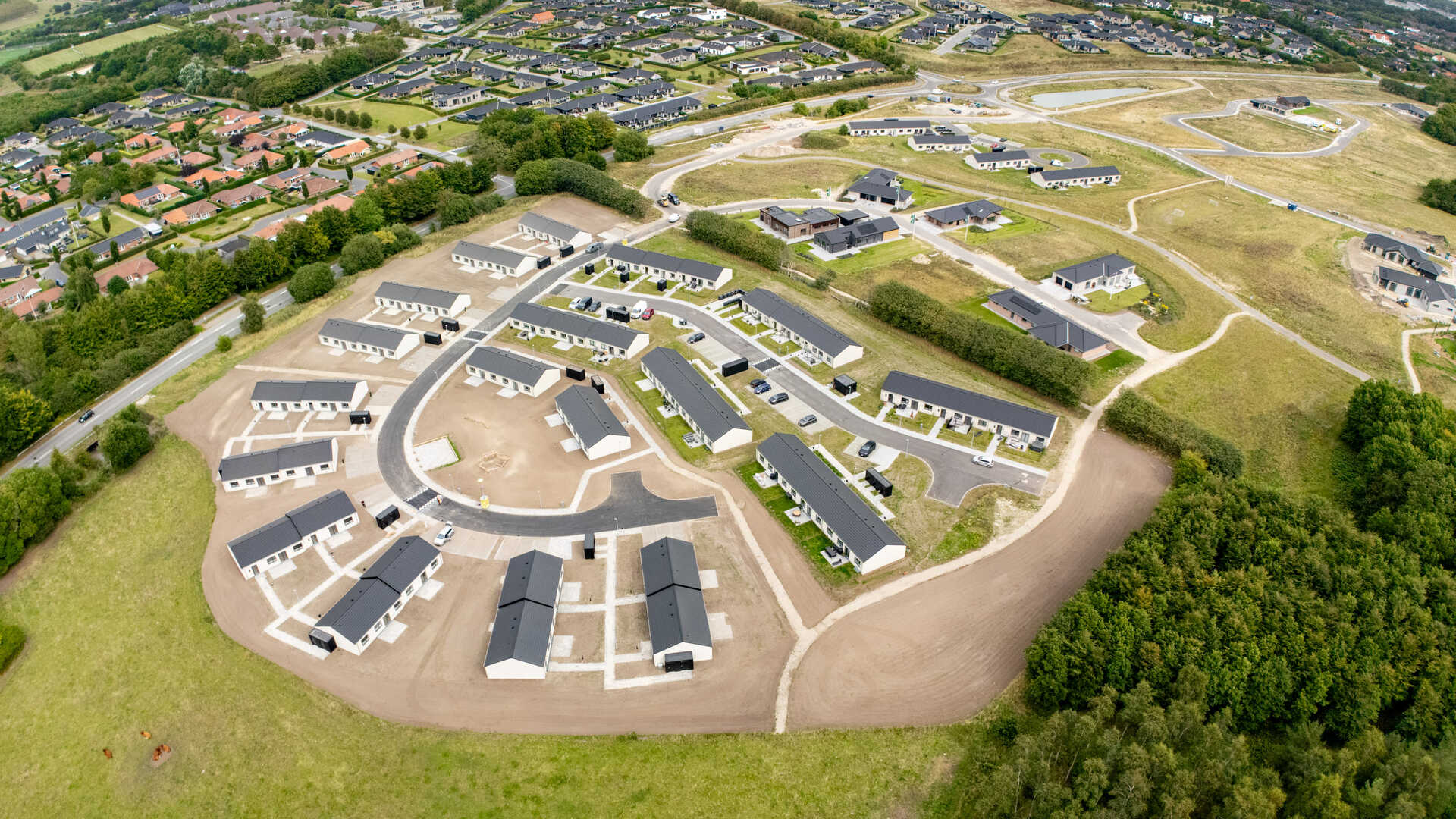 I et nyt boligkvarter i den sydlige del af Helsinge har vi for Stensdal Group opført 200 boliger til udlejning. Boligerne er på 80-110 m2 og opført i tidløs og vedligeholdelsesfri arkitektur uden udhæng, og med luft-til-vand varmepumper.