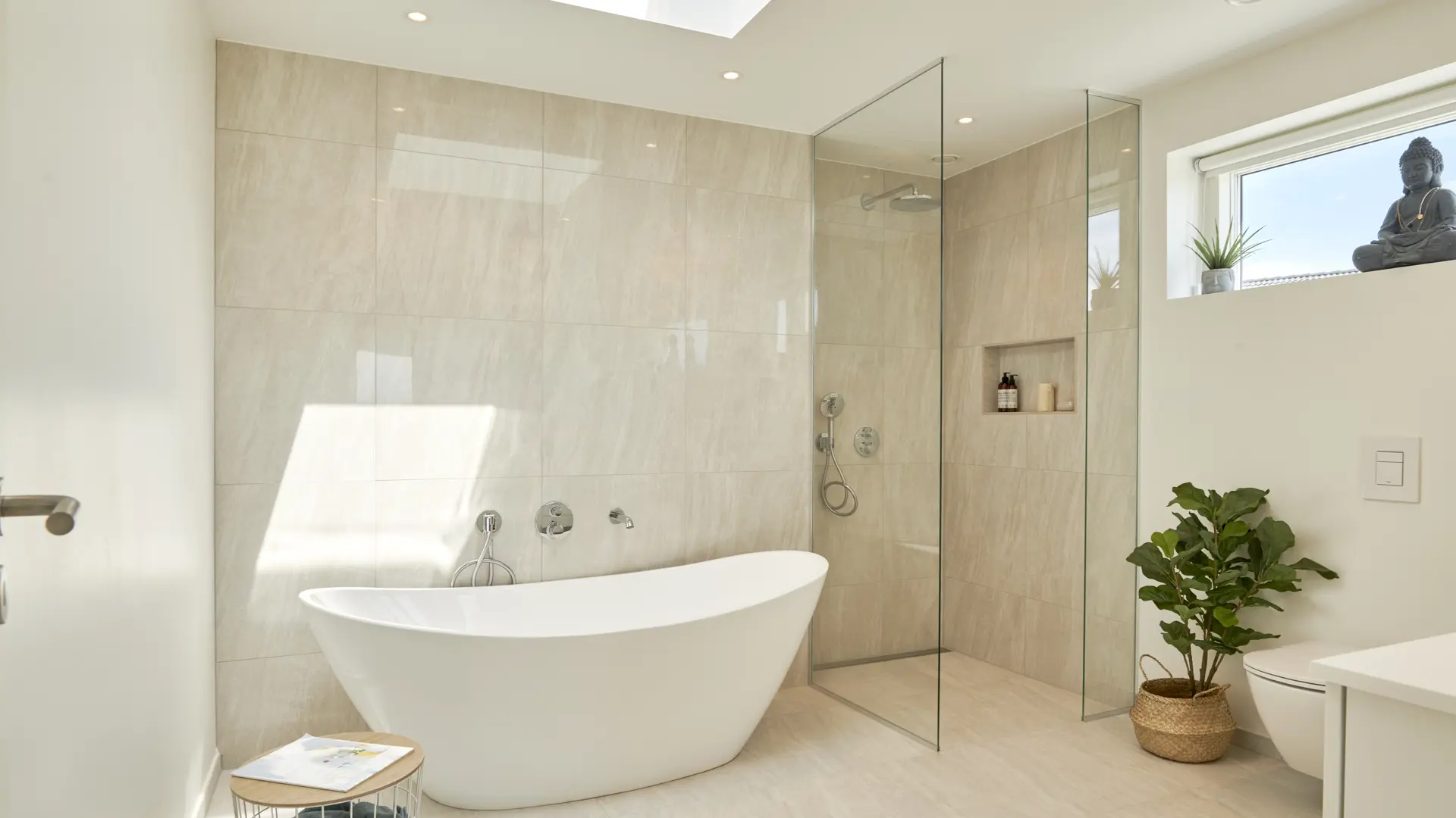 Badeværelse med ovenlys og badekar | 702962